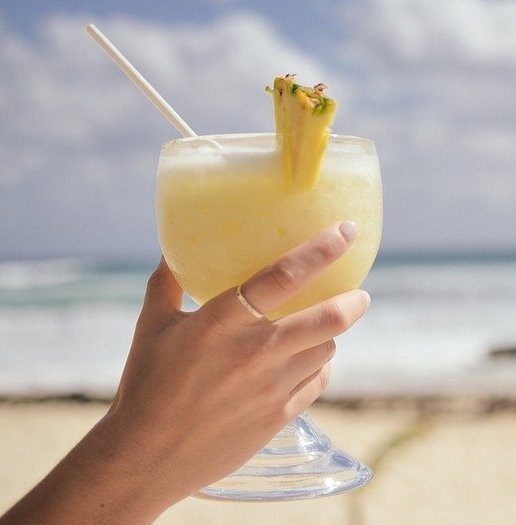 - In a blender pour in pineapple juice, coconut cream, white rum, and ice cubes